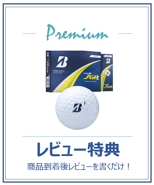 新商品発売記念として、レビュー投稿いただける方にブリヂストンのゴルフボール「JGR ホワイト 4スリーブ(1ダース)」が先着40名、期間限定でお選びいただけます!