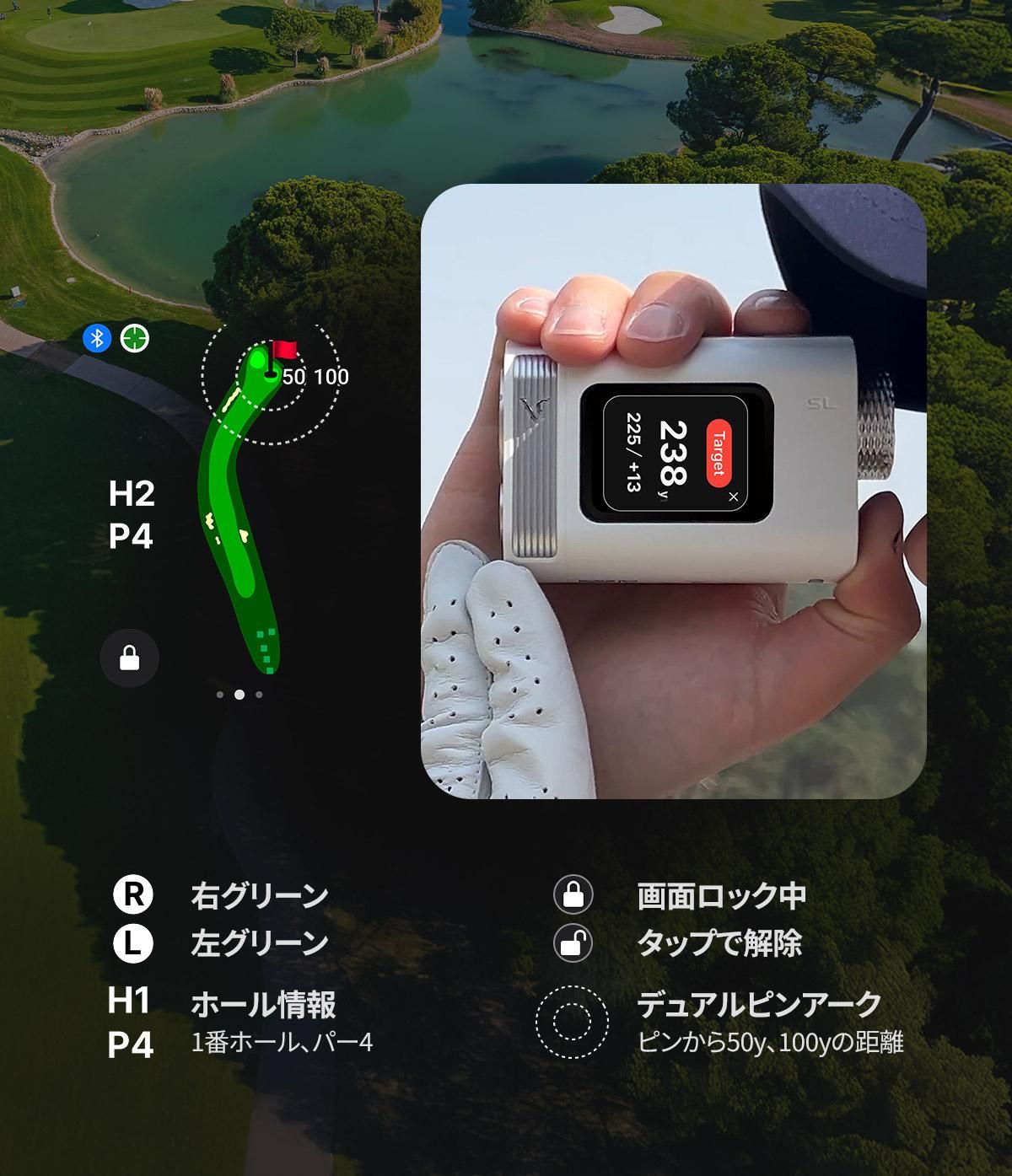 タッチOLEDディスプレイ搭載で、コース・グリーン情報が一目瞭然!